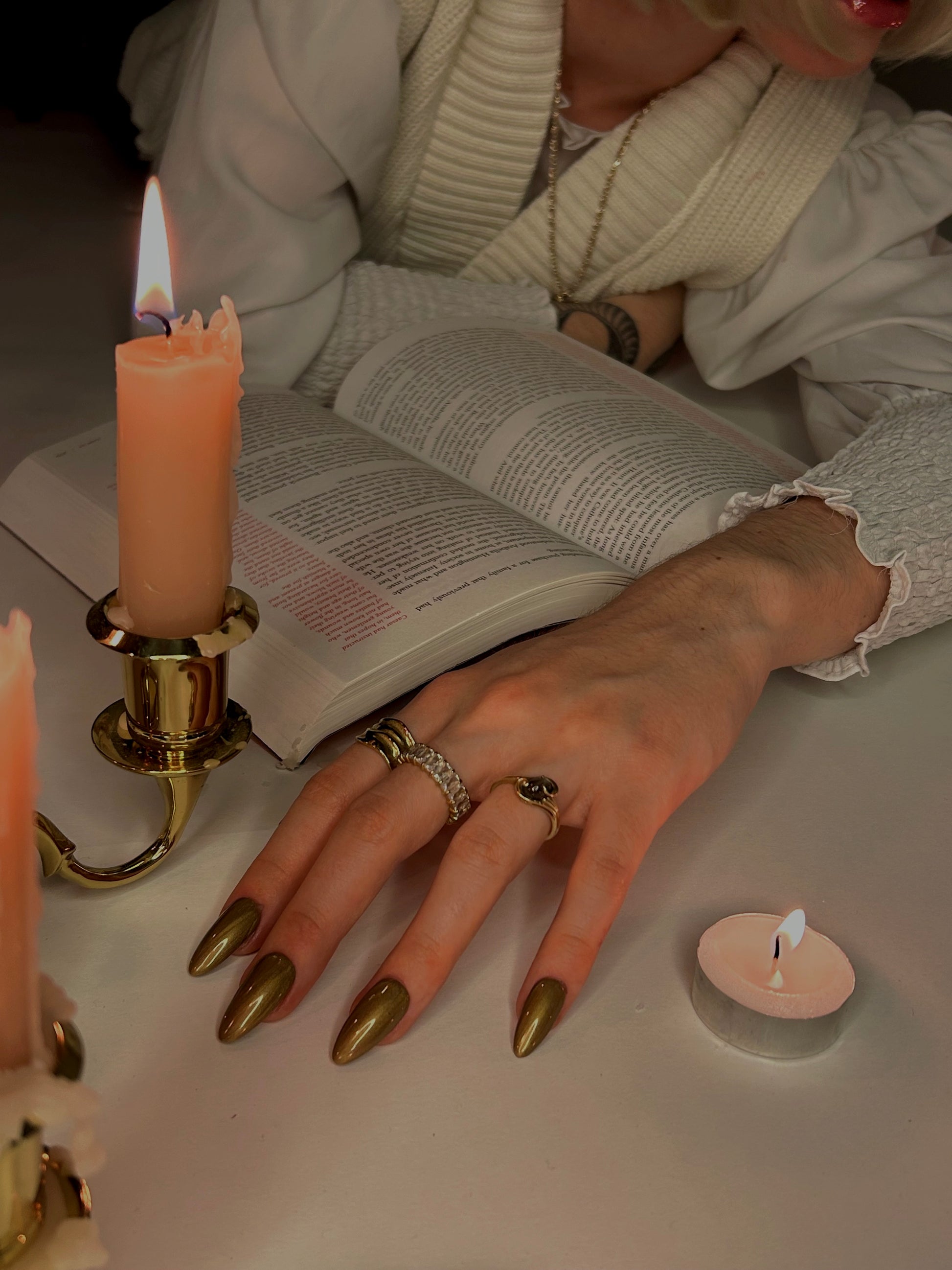 Illuminez vos ongles avec l'éclat chaleureux de "Candlelight", un gel chrome doré éclatant qui capture l'essence des moments tranquilles de lecture en soirée et de contemplation à la lueur douce des bougies. Cette teinte dorée lustrée incarne la richesse et la sérénité de ces instants intimes, créant une toile opulente et réfléchissante pour votre art des ongles. Comme la lumière se reflète sur la finition chromée, imaginez la douce danse des ombres rehaussant la sophistication de l'éclat doré. "Candlelight" vous invite à vous plonger dans la chaleur luxueuse d'une soirée sereine, en faisant le choix parfait pour ajouter une touche d'élégance raffinée à votre manucure festive. Laissez vos ongles briller avec l'allure réfléchissante de "Candlelight", transformant vos bouts de doigts en une source d'éclat enchanteur.