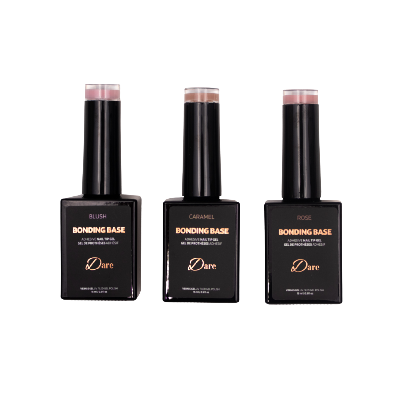 - Bonding Base pigmentés en teintes Rose, Caramel et Blush.