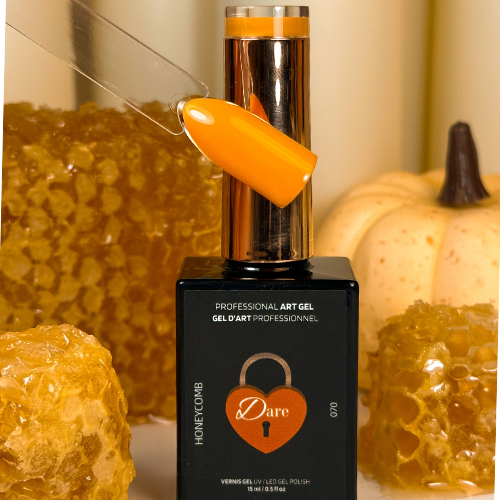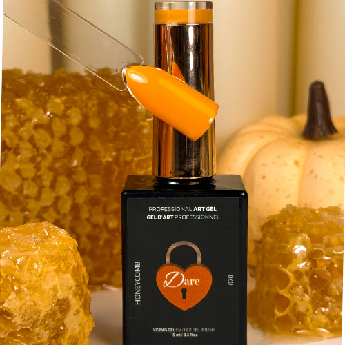 Meet Honeycomb, our professional gel polish in a rich honey yellow with soft orange undertones. Deeper than a bright sunny yellow, this shade captures the golden warmth of true honey and the comforting strength of autumn tones. Elegant yet distinctive, it brings depth and character to every manicure.With Honeycomb, your nails reveal a new kind of radiance. Its creamy formula glides on smoothly, while the strong pigmentation delivers flawless, even coverage. Versatile and modern, it’s the perfect shade for both everyday and bold artistic designs.Honeycomb stands out for its balance of softness and intensity. A warm, sophisticated color that speaks of confidence and creativity.