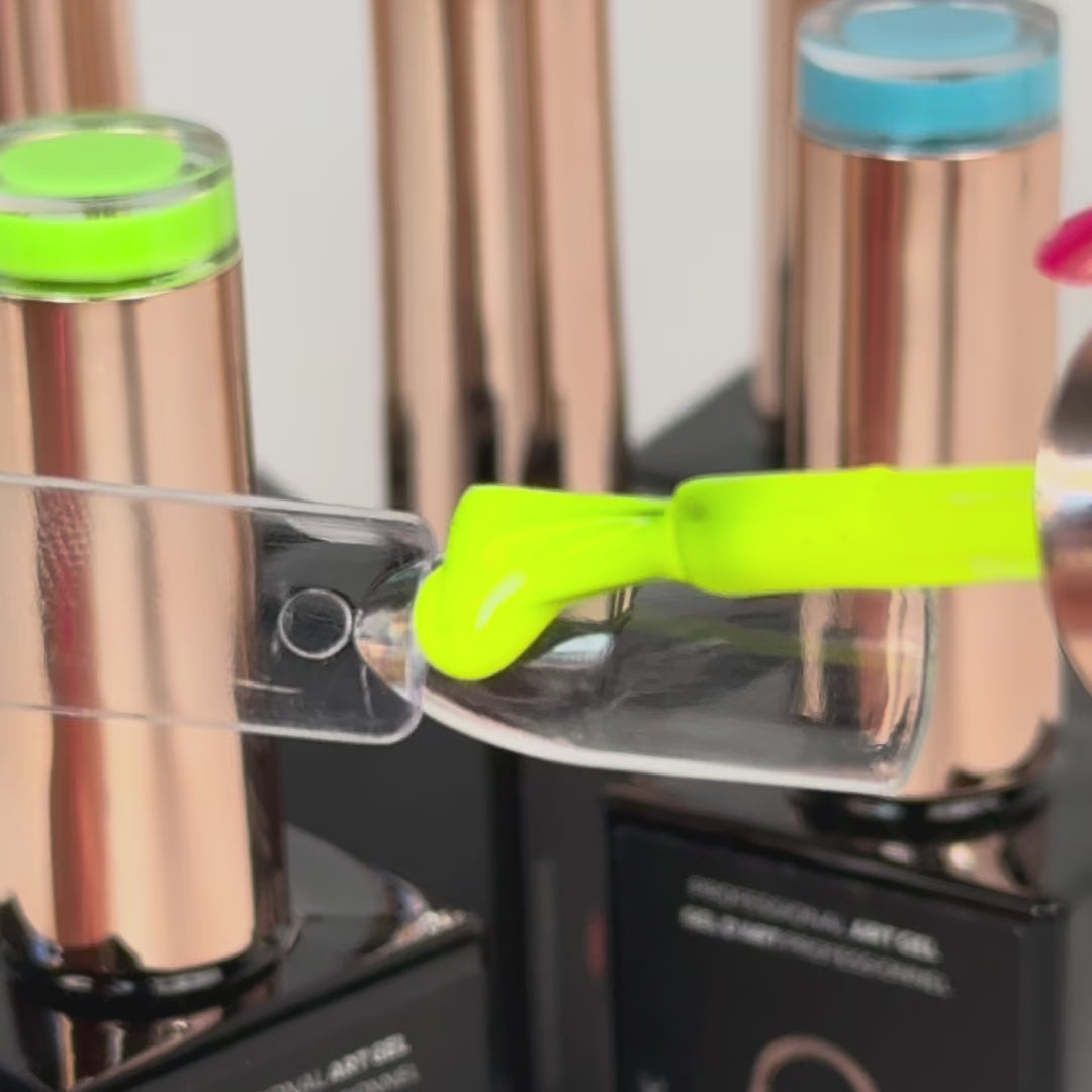 “Spotlight” brings a jolt of brightness to your nail art, radiating with electric intensity and glowing like a neon sign. Its high-pigment formula delivers clean, crisp details, making every stroke shine with pure impact.